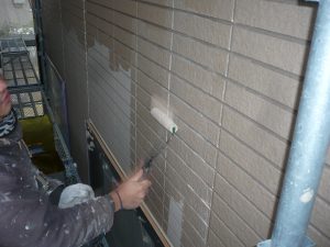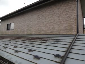 こんにちは、宮城県名取市の外壁・屋根塗装専門店SRマイペイントの佐藤です。 太白区アパートFの外壁・屋根の塗装工事を行っています。 今日は、屋根の中塗り塗装を行っています。 (錆びてる箇所は錆落としをして下塗りを行いました。) 横葺トタンの隙間と雪止めは、刷毛で塗ります、その後にローラーで塗って行きます。 屋根の面積広いので3人で分担して行っています。 時々、風が吹きますが今日もけっこう暑いねι(´Д`υ) 職人さん達頑張ってます。熱中症に気を付けて宜しくね。 [caption id="attachment_216" align="alignnone" width="300"] ローラーで塗っています。[/caption] [caption id="attachment_218" align="alignnone" width="300"] 刷毛入れしてます[/caption] [caption id="attachment_219" align="alignnone" width="300"] 隙間もしっかり刷毛入れします。[/caption] 2019年8月9日 更新