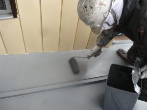 サビた屋根に99.99%のシリコーン樹脂「バッファーコート」を二回塗装します。