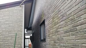 外壁の汚れは高圧洗浄でほぼ落ちますが、藻は全部落ちきれず職人さんの手作業で落としました。