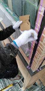 年数もたてば劣化します。割れたコーキングは撤去し新規に打って行きます。