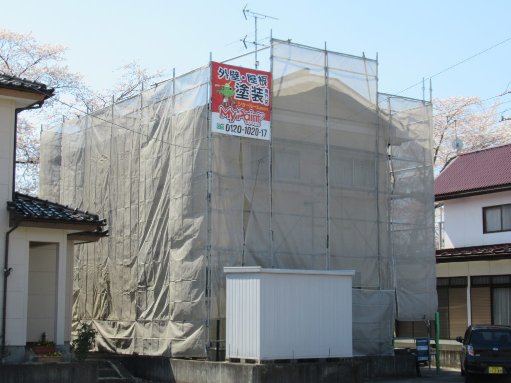 桜が満開のなか大河原で屋根と外壁の塗装工事をしました。
