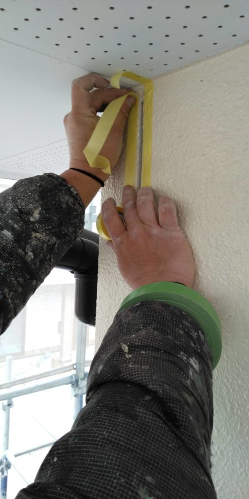 新規にコーキングを打つ目地より少し幅を持たせて養生テープを貼ります。