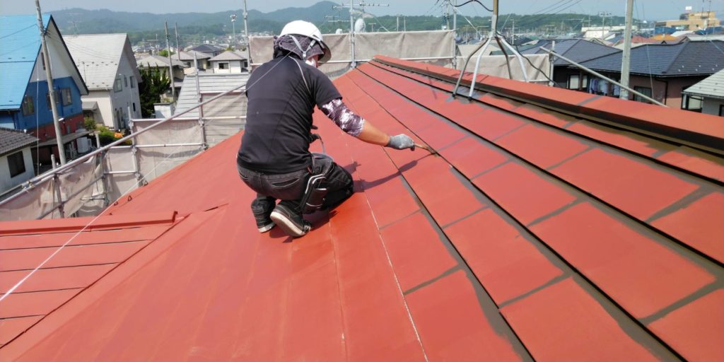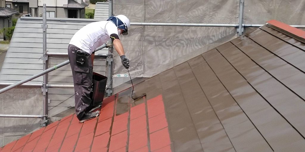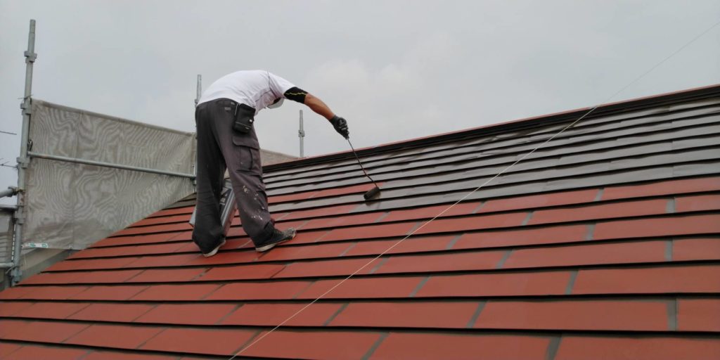屋根塗装でローラーを使う際は柄の長いローラーを使うと楽です。
