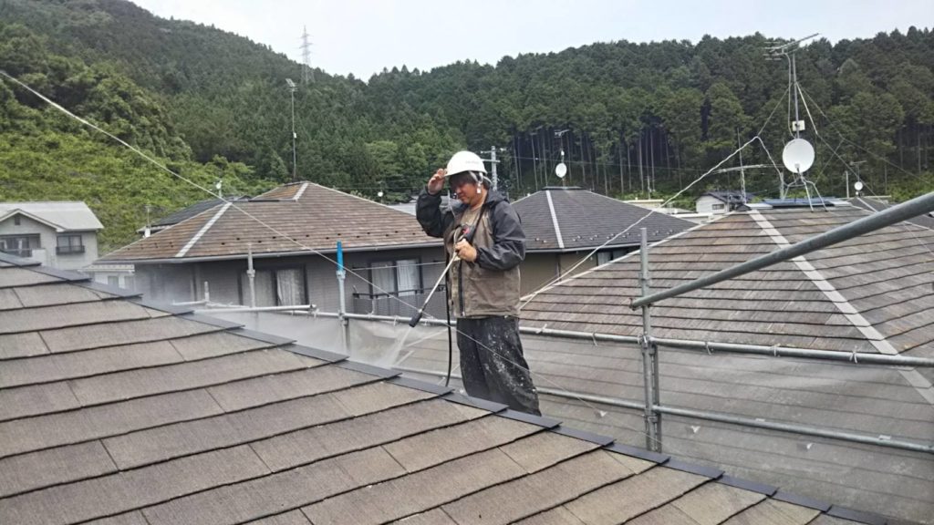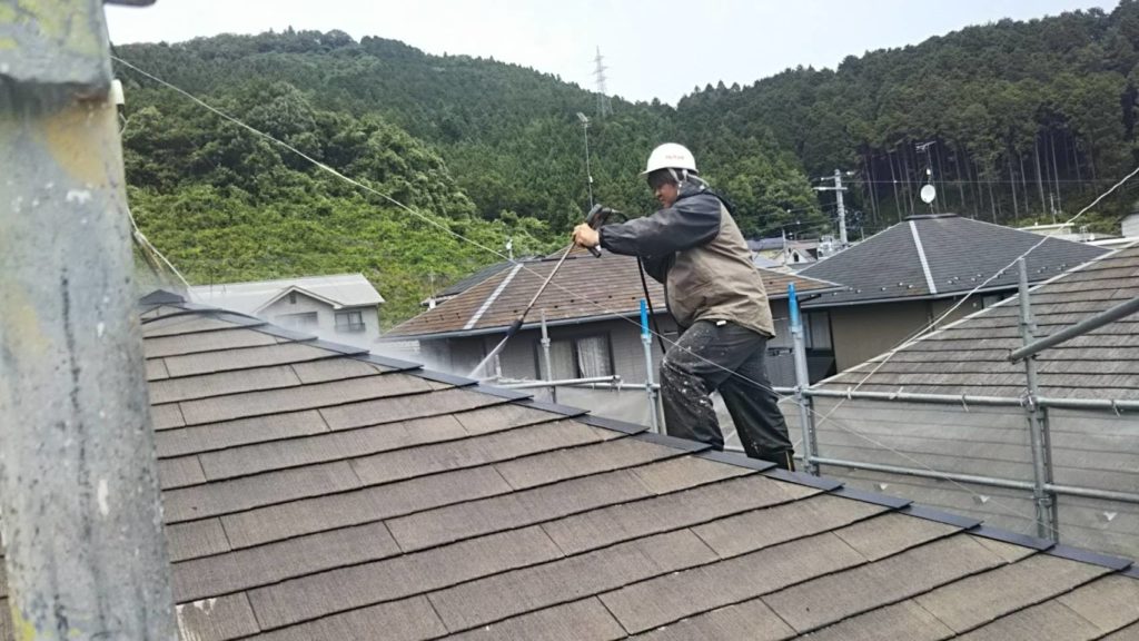 屋根の汚れはトルネードでしっかり落とします。