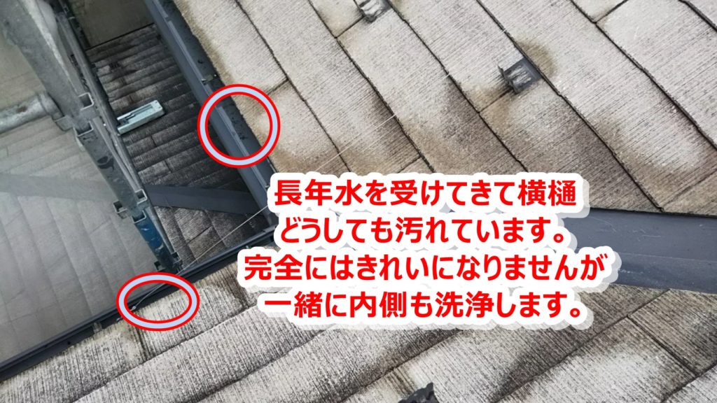 横樋長年の汚れがたまっているので、一緒に洗浄。