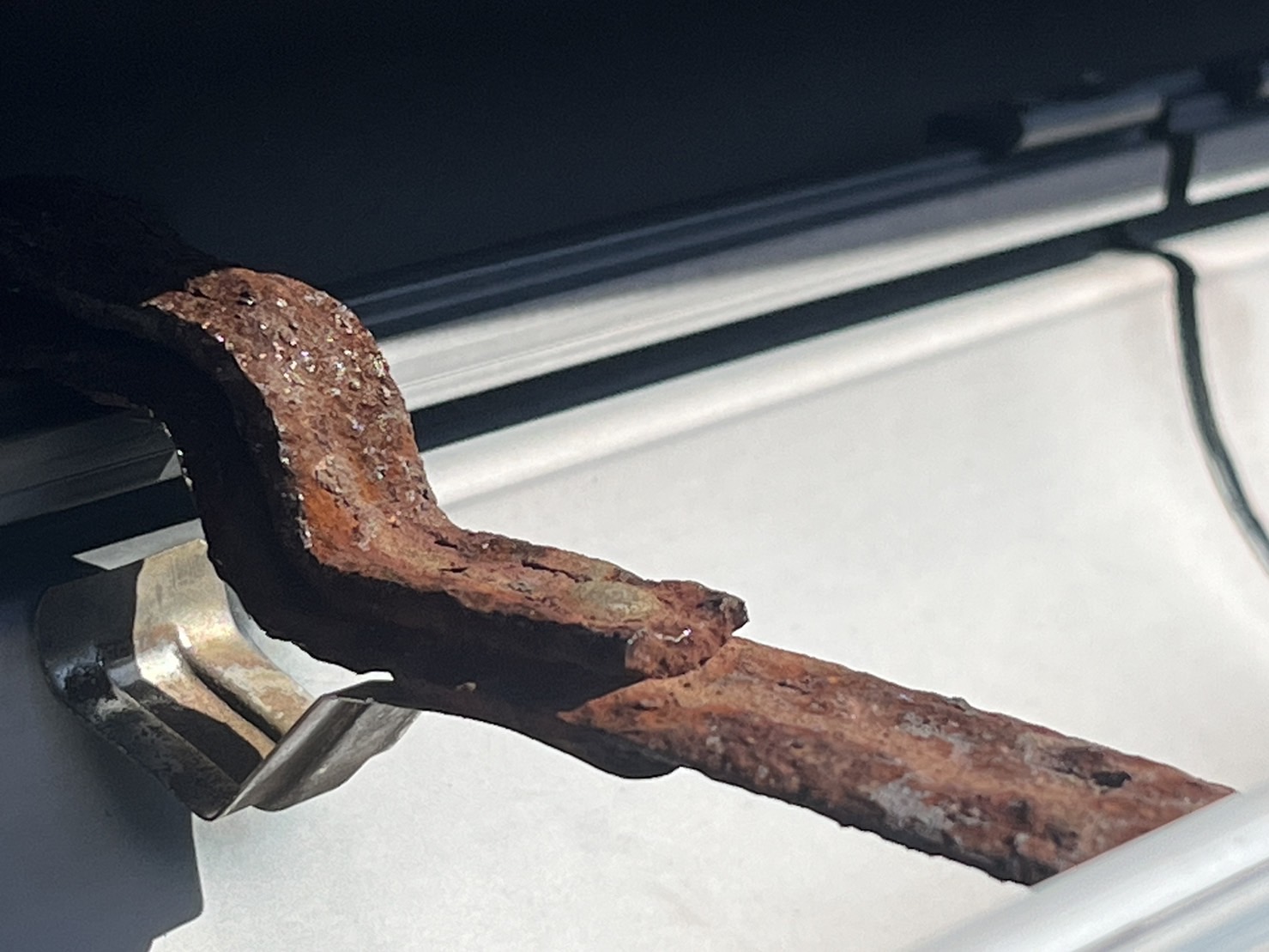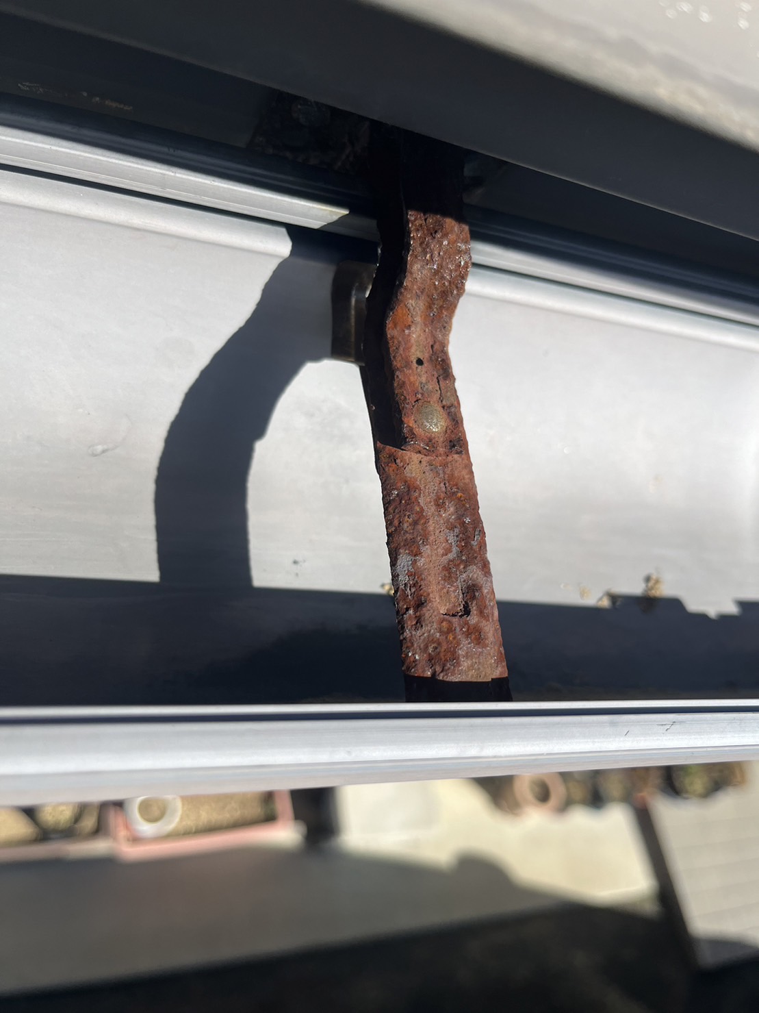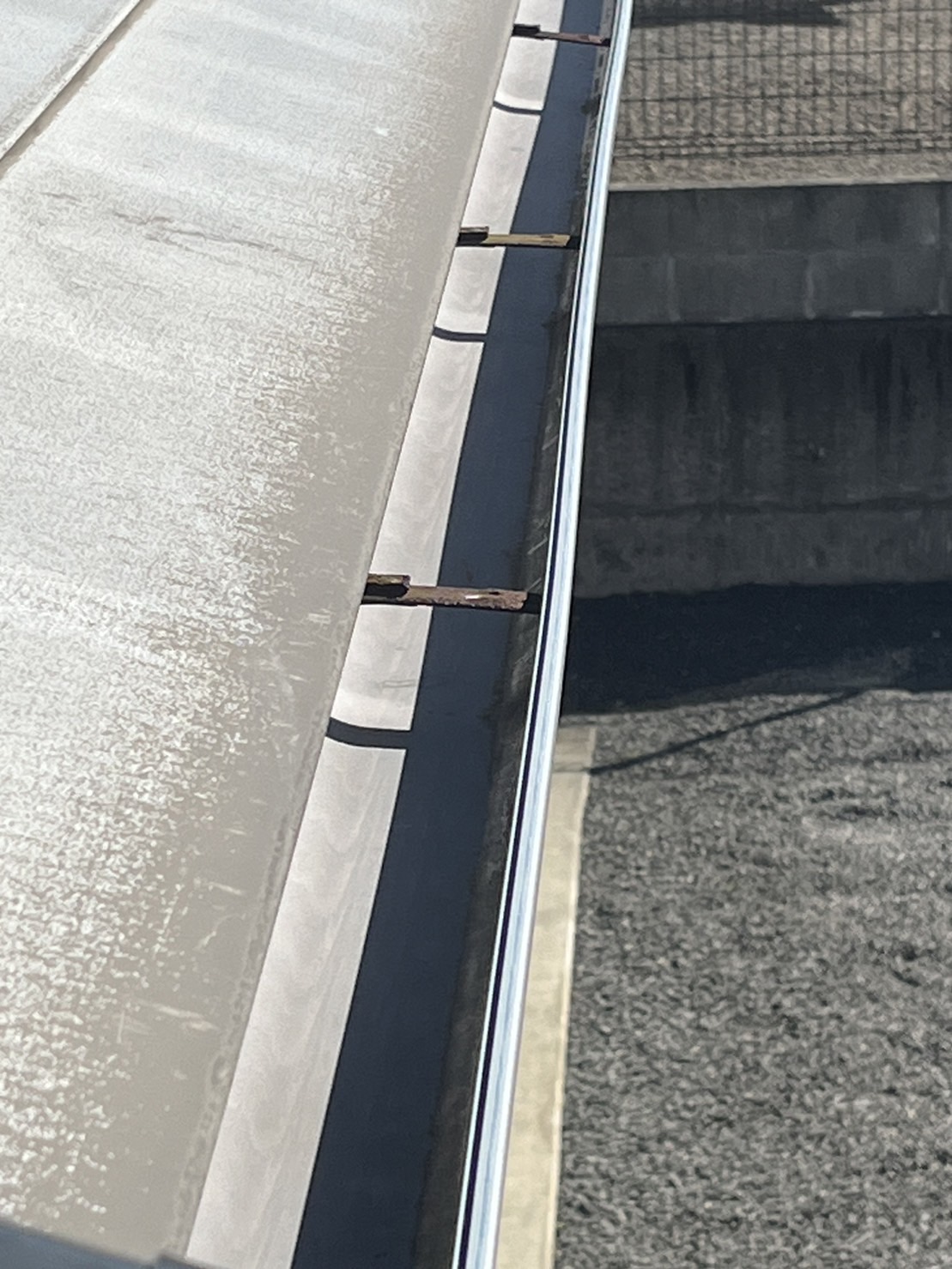 点検したところ、雨樋を固定している金具が錆びており、一部破損も見られました