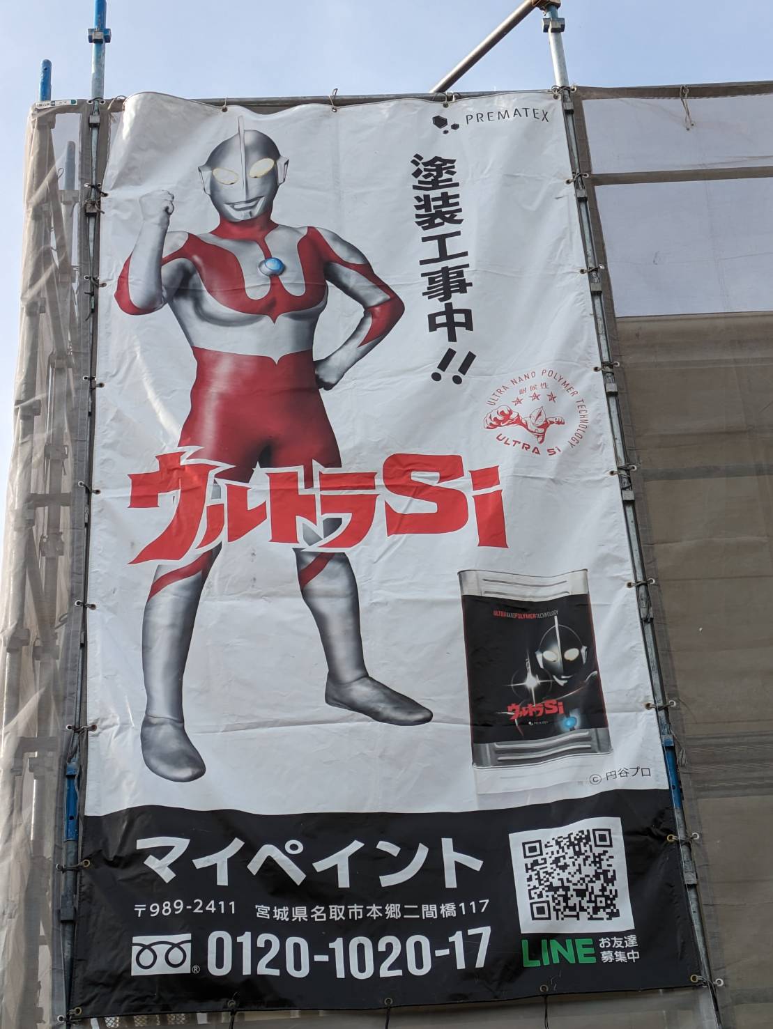 柴田町船岡近辺で、現在ウルトラマンのイメージシートが続々貼られています。
