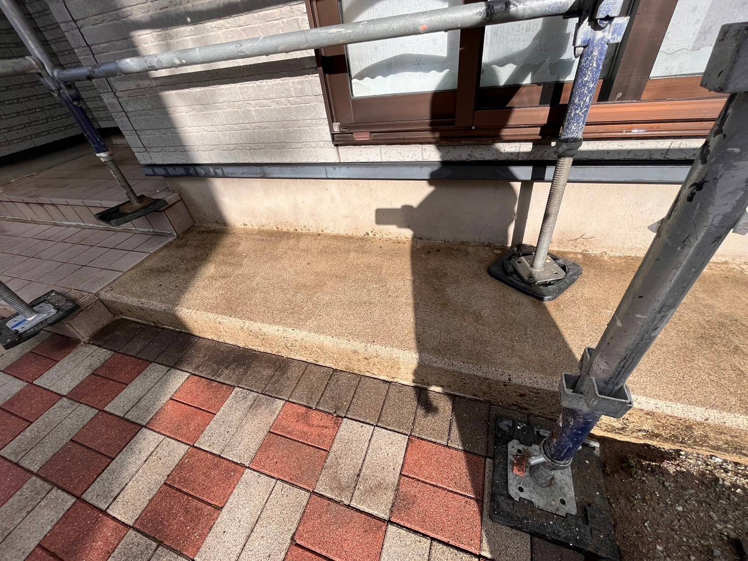 屋根外壁を洗浄し、最後に玄関前や土間コンクリート等に落ちた汚れを洗い流しますが
