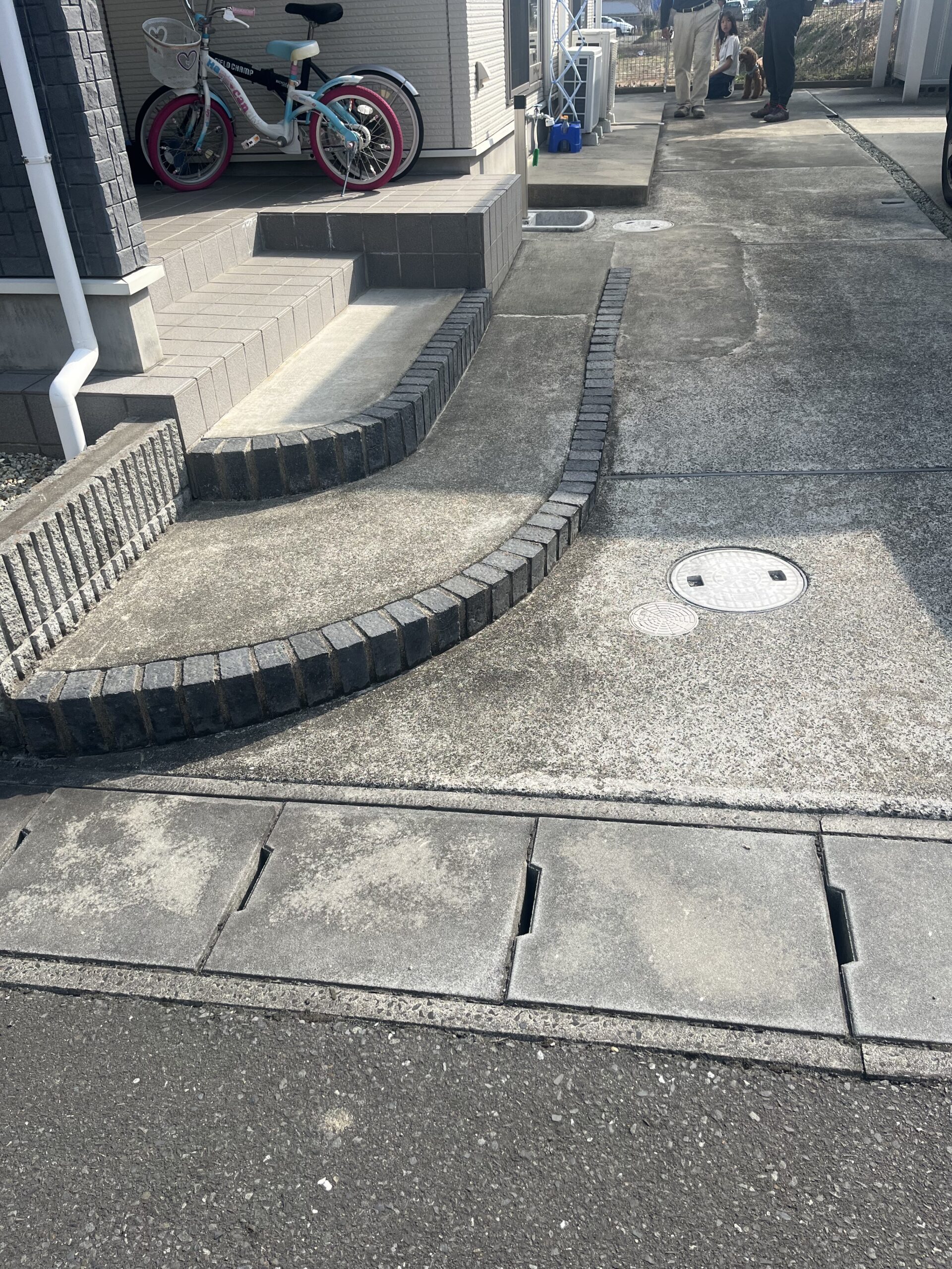 そして、玄関前の段差が車の侵入に差し支えがあるんで、そこの部分は、写真の様に段差を緩やかに