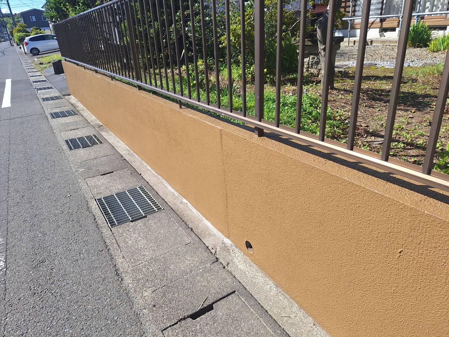 まず、外塀の一部が浮いてしまっている箇所がありましたので、そこをしっかりと取り外しました。そして、新しく作成した部分を施工し、最後に全体を塗装して仕上げました!