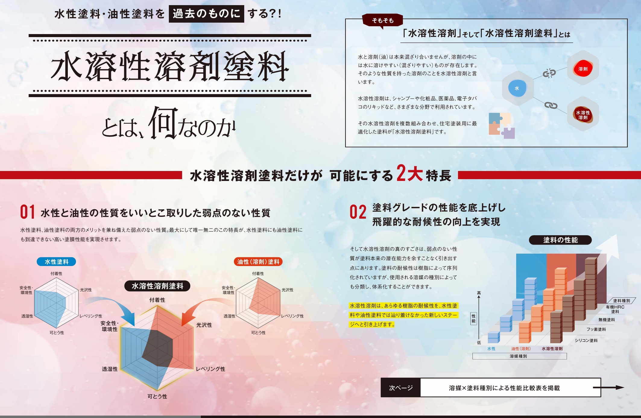 最近の現場で使用させていただくことが多くなりはじめました。 油性と水性の良さを兼ね備えた新しい塗料です 水溶性溶剤がかなえる安全な低VOC塗料 「塗料」と聞くと、シンナーのようなツンとくる匂いを思い浮かべる人も多いのではないでしょうか。その匂いの正体は、塗料を溶かすために使われる有機溶剤。でも、この有機溶剤、実は人体や環境に悪影響を及ぼす可能性のある物質、**VOC(揮発性有機化合物)**を含んでいることがあります。 健康や環境への配慮から、VOCの排出を抑えた「低VOC塗料」が注目されていますが、油性塗料の持つ「強さ」や「耐久性」を犠牲にすることなく、安全で環境にやさしい塗料を作ることは難しいとされてきました。 水溶性溶剤が起こすイノベーション そんな課題を解決するのが、水溶性溶剤です。 水溶性溶剤と水を組み合わせることで、油性塗料の優れた点を保ちながら、VOCを大幅に削減した塗料が開発されています。 たとえば、油性塗料(弱溶剤塗料)に一般的に含まれるキシレンやエチルベンゼンといったVOC。これらは日本塗料工業会が定めるVOCリストにも記載されている物質ですが、水溶性溶剤を使った塗料には含まれていません。これにより、塗装時の匂いが少なくなるだけでなく、シックハウス症候群の原因物質を減らすことにもつながります。 水性と油性のハイブリッド 水溶性溶剤塗料は、水性塗料と油性塗料の「いいとこ取り」をした、まさにハイブリッドな存在です。 水性塗料のメリット:水で希釈できるため安全で、匂いが少ない。 油性塗料のメリット:密着性が高く、耐久性に優れている。 これまでの塗料は、どちらかのメリットを優先すると、もう一方のデメリットを受け入れる必要がありました。しかし、複数の水溶性溶剤を組み合わせることで、水溶性溶剤塗料は両方のメリットを兼ね備えることに成功。安全性と高性能を両立させた、画期的な塗料が誕生したのです。 安全で人にも環境にもやさしく、それでいて高性能。そんな「いいとこ取り」の塗料が、私たちの暮らしをより豊かに、そして安全なものにしてくれるかもしれません。 気になる方はぜひマイペイントにお問い合わせください。 2025年9月3日 更新
