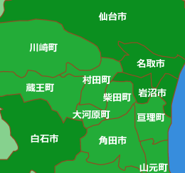 仙台市太白区、仙台市泉区、仙台市若林区、仙台市青葉区、仙台市宮城野区、名取市、岩沼市、多賀城市、塩竃市、富谷市、角田市、白石市、東松島市、利府町、七ヶ浜町、亘理町、山元町、大河原町、柴田町、村田町、蔵王町、丸森町