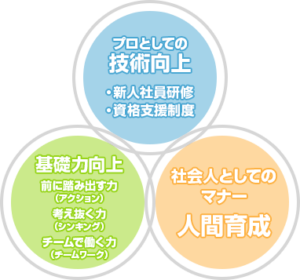 - 自分の技術に自信を持ち、いつでも新しい技術・商品・情報に耳を傾け成長し続ける