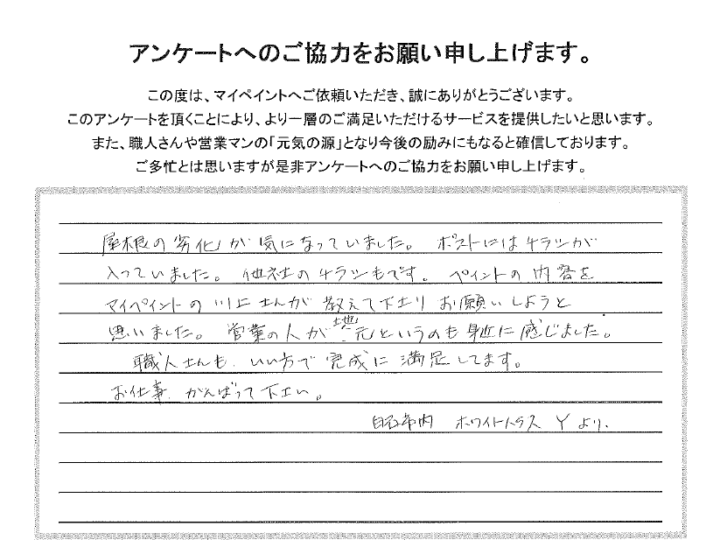 マイペイントは自信があるからお客様の声をそのまま載せています。