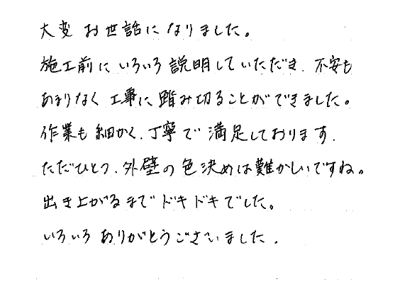 不安もあまりなく、工事に踏み切る事が出来ました。