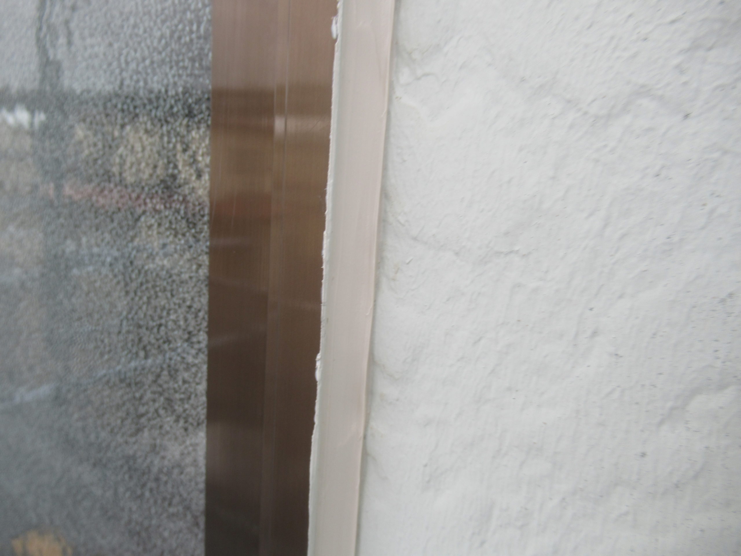 サッシと外壁の間にコーキングを打ちました。経年劣化のためコーキングもすっかり痩せてしまったので隅々まで点検し、今できる最高を目指し工事をしました。