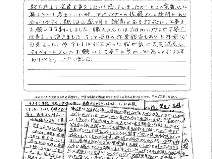 今キレイに仕上がった我が家に大変満足し マイペイントさんにお願いして本当に良かったと思っております。
