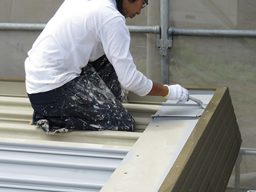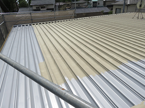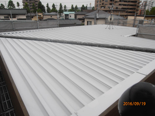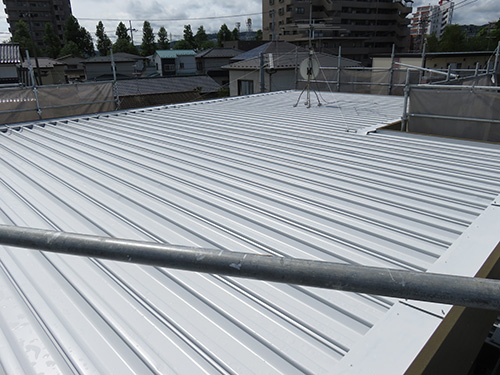 平らな屋根の場合ローラーでコロガス事が出来ますが、折半屋根は時間がかかります。平らな屋根と比べるると工事単価も高くなります。