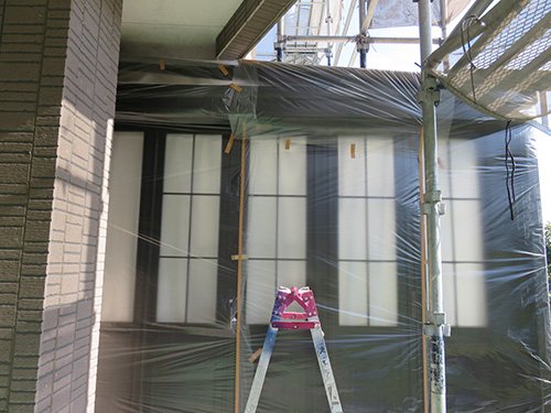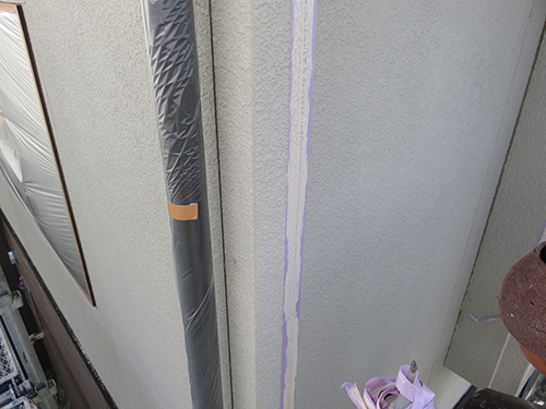 マスキングテープで養生をし、打設しました。二階も同じようにコーキング処理。