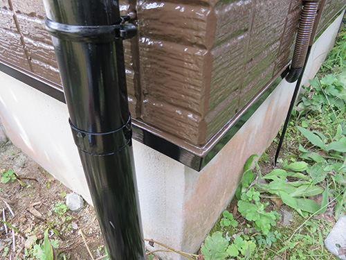 附帯塗装部、雨樋・水切りもピカピカです。鏡のようになっています。満足できる仕上がりに成りました(^_^)/