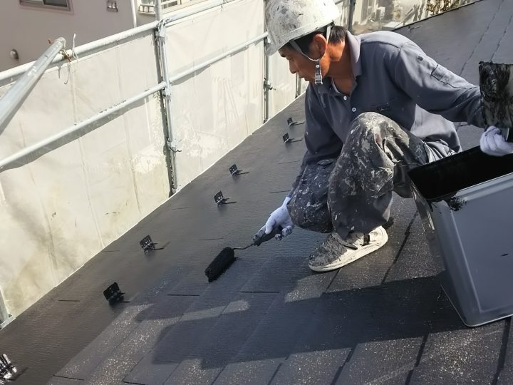 屋根も高圧洗浄後、下塗り・中塗り・上塗りの3工程になります。