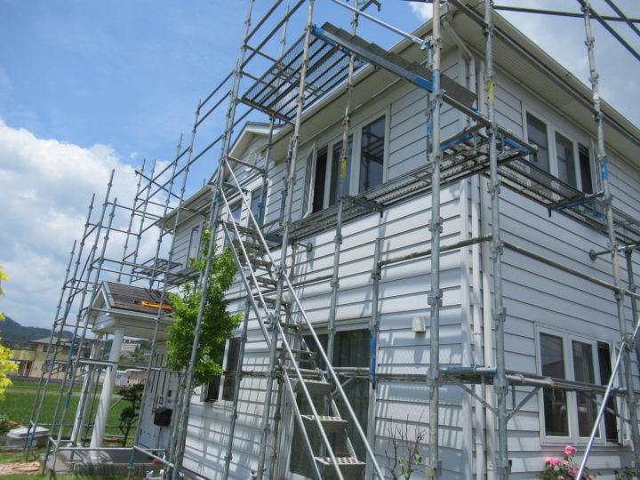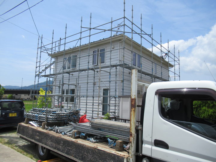 足場組立の日は天候もよく順調に進みました。