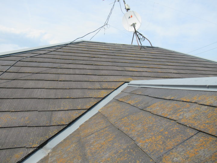スレート屋根を高圧洗浄で綺麗にします。