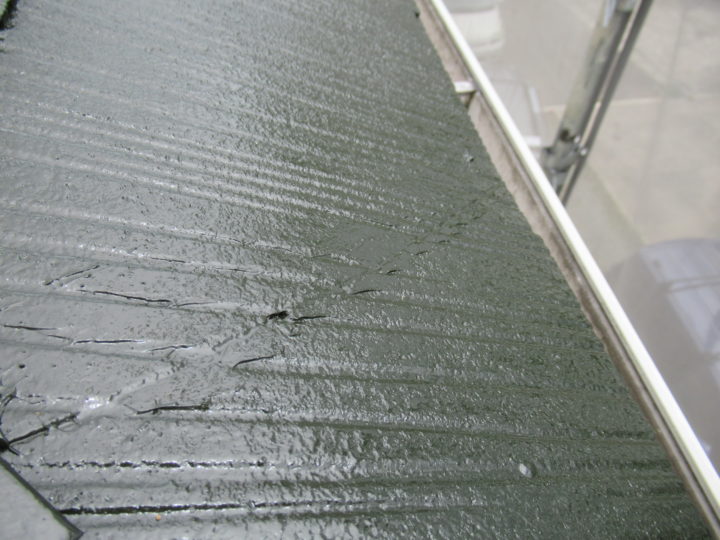 屋根材の割れは、コーキングで止めます。