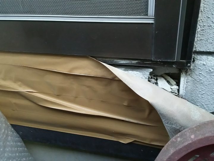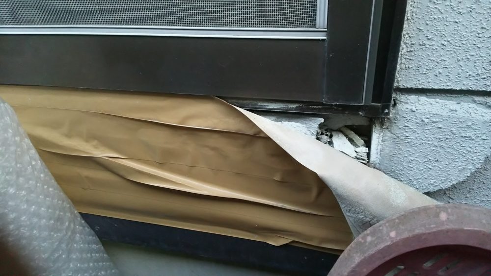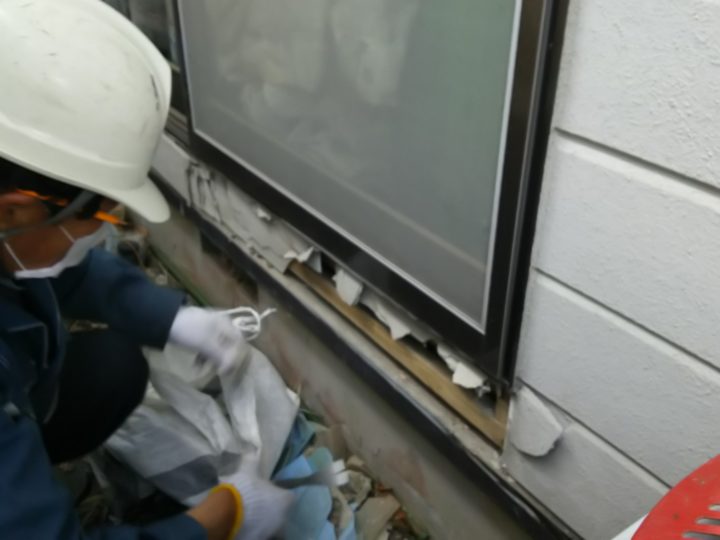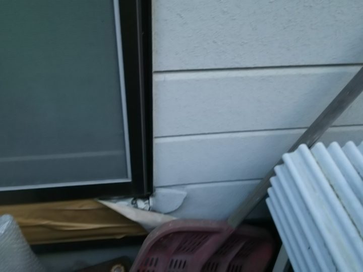 サッシの端にある「水切り」部分から結露などにより、流れてきた水がたくさん当たり外壁が壊れたと思います。