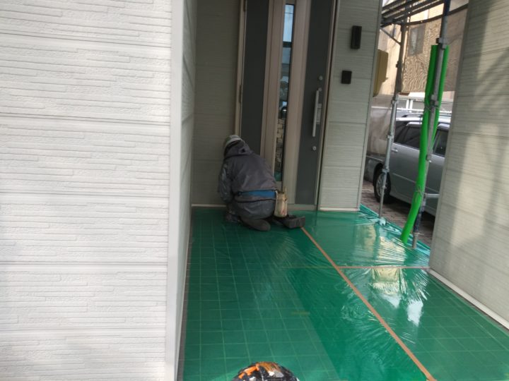 ペンキは下に落ちますので汚したくない所をビニールで養生します。