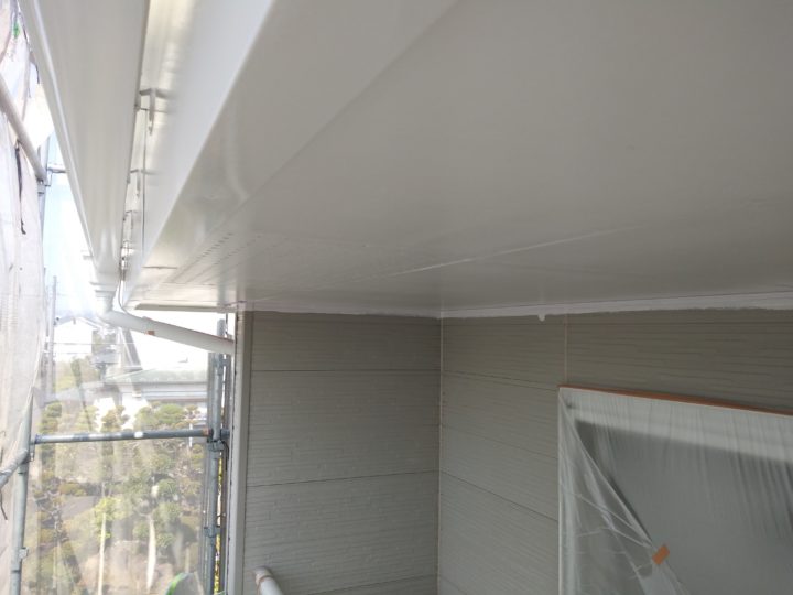 この写真は洗浄後の写真です。屋根と外壁の隙間ですが、コーキングの打っている所と打っていない所があります。