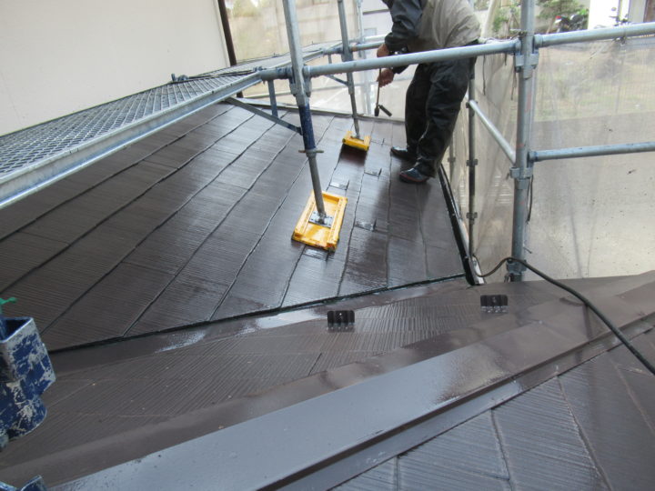 劣化した屋根を洗浄すると、素地が見えたり色が薄くなっていたりしますが、下地処理をすると若干色が濃く見えるようになります。