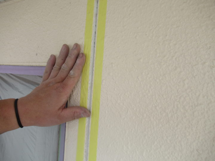 建物は必ず動きますので、どうしても一部塗膜が割れます。