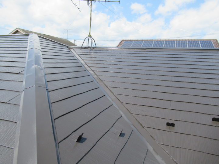 抜群の仕上がりで今後もお家を守ってくれる大切な屋根です。長持ちするように丁寧に塗布しました。