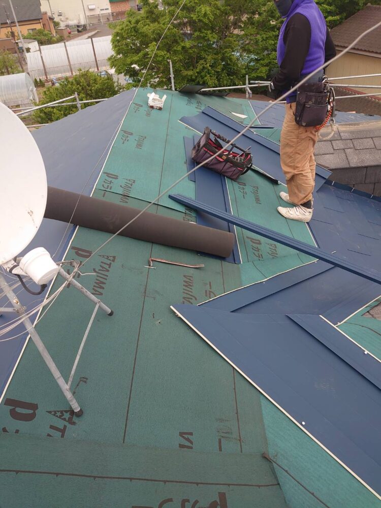 亘理郡亘理町屋根T様邸の重ね貼り依頼あり 施工しました